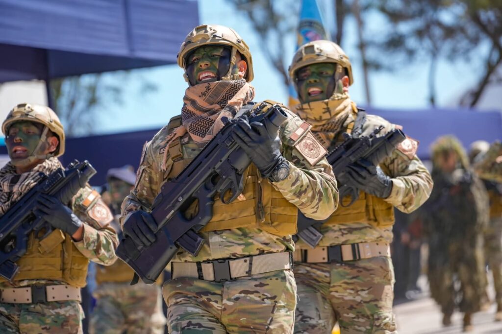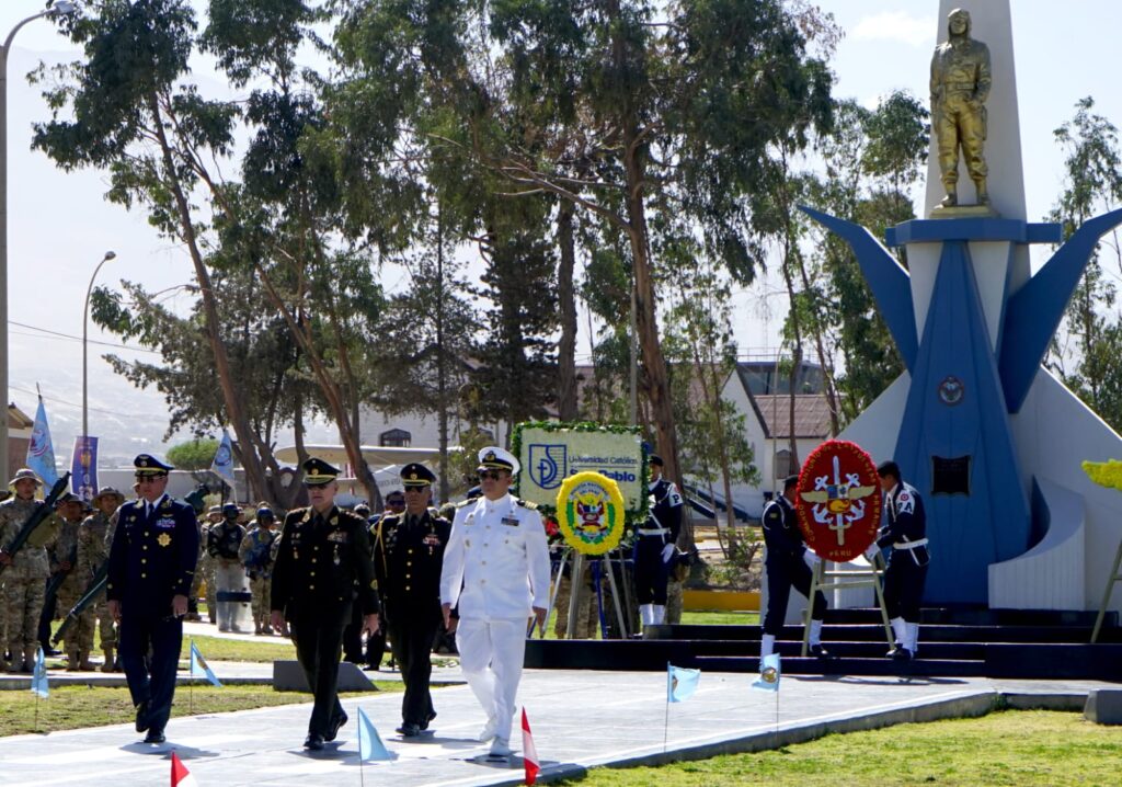 Como parte del programa, se realizó la colocación de ofrendas florales en memoria del Capitán FAP José Abelardo Quiñones Gonzales, seguida de un desfile militar institucional, en el que el personal de las distintas unidades participantes mostró su marcialidad, disciplina y vocación de servicio al país.