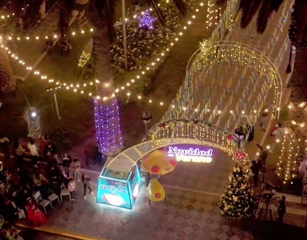 El encendido, realizado el 7 de diciembre, formó parte de una transmisión en vivo por América TV, que unió de manera simultánea espectáculos en Lima, Arequipa y Chiclayo, permitiendo que miles de familias en todo el país vivieran el inicio de la Navidad desde sus hogares. En Arequipa, la celebración estuvo conducida por Erick Elera y China Li, junto a la presentación musical de Son Tentación, quienes aportaron ritmo y calidez a la velada.